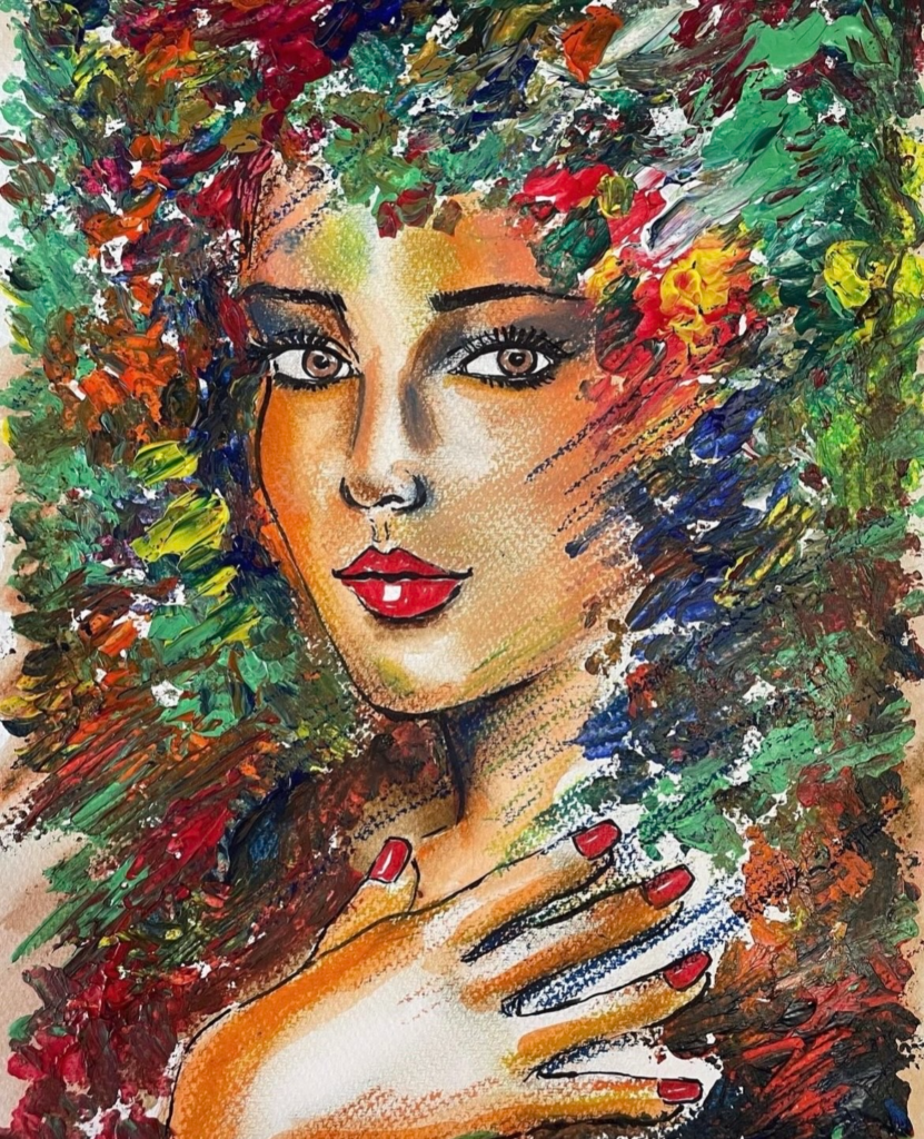 Guanco kept her mind and hands busy, dabbling in art over the years. But it was only in 2016 that she seriously embraced her calling as an artist. Transitioning from media, then a PR career, which she held for over 18 years, she embarked on a personal odyssey, resulting in her inaugural solo show, Boho Chic, in 2016—a fusion of fashion illustration and human anatomy. This was then followed by her second “virtual” exhibit, Festival, which was an uplifting and inspiring collection that she created to counter the heavy emotions of the pandemic.