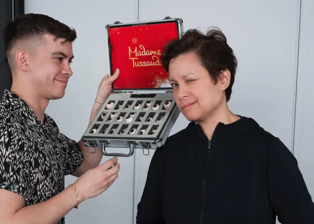 (Lea Salonga gets her measurements taken by Madam Tussauds)