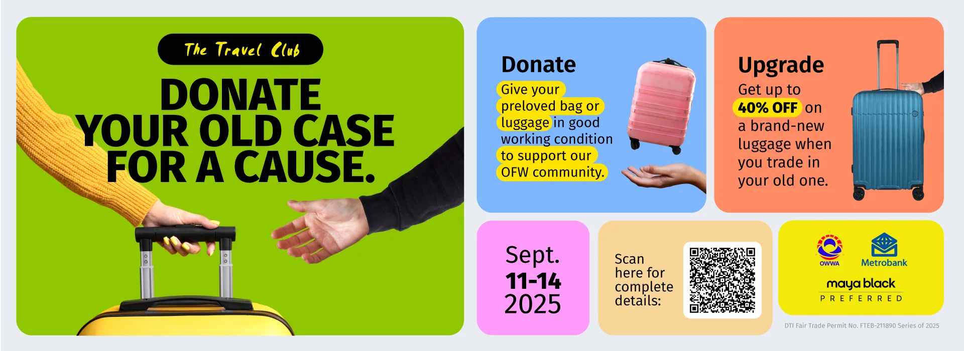 Beyond being a shopping event, the Trade-In Sale has become a growing tradition that blends practicality with purpose. In its run earlier this year, donated luggage helped empower first-time Overseas Filipino Workers (OFWs) and seafarers as they embarked on life-changing journeys abroad. With this new edition, the call continues—this time also offering fresh perks for cardholders through partnerships with Metrobank Travel Visa Signature Card and Maya Black Card, making the experience even more rewarding.