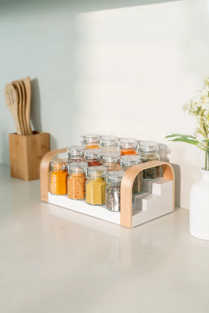 The UMBRA Bellwood 3-tier spice shelf (P1,999) and UMBRA Bellwood Lazy Susan Divider (P2,999) are among the several stylish kitchen organizers now available in SM Home.